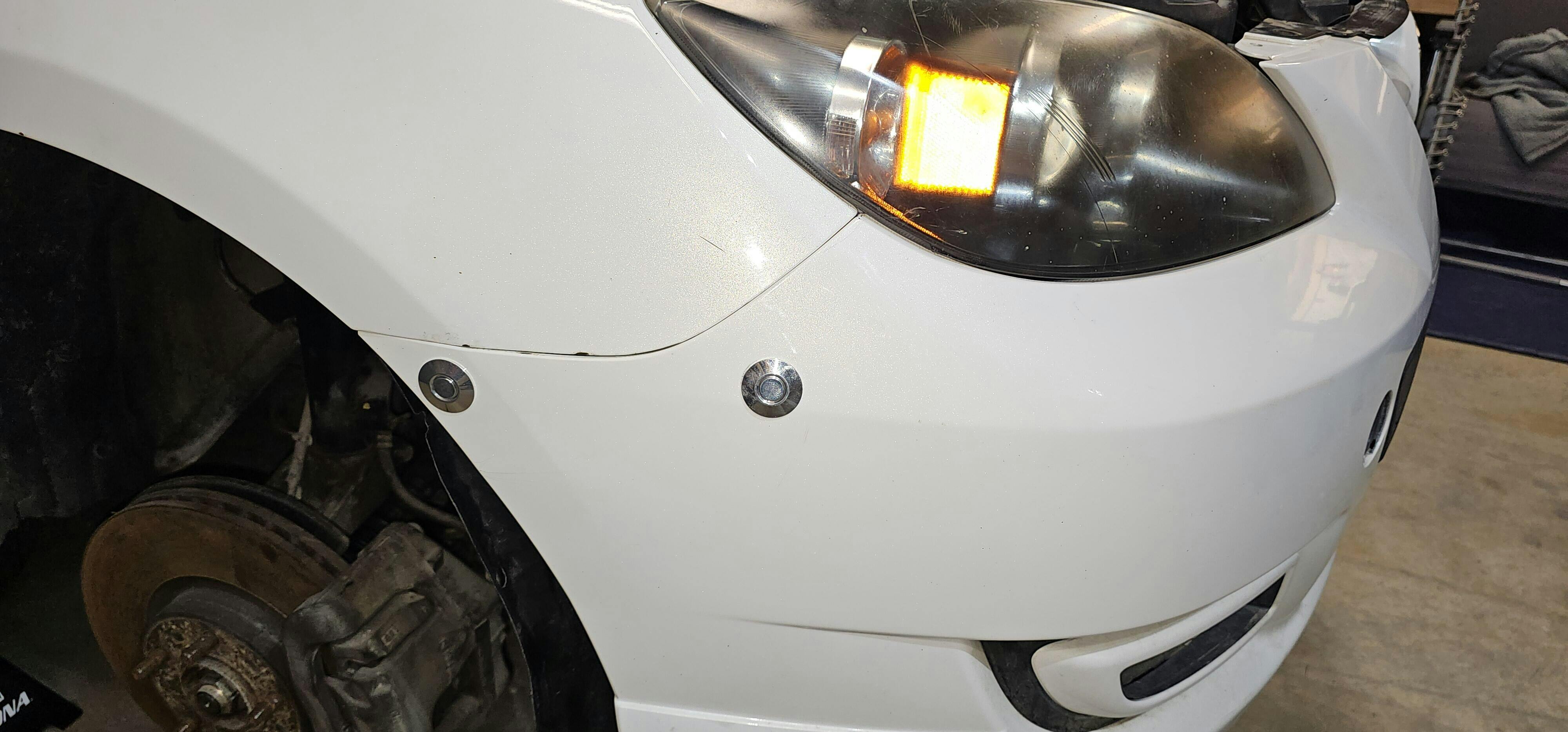 RaiderFab and Mazdaspeeds.org are proud to offer a bumper fitment solution without the need of those ridiculous rubber bands that stretch and fail for first generation Mazda 3s (2004-2009) and Mazdaspeed 3's (2007-2009)Raiderfab is a proud distributor for Quik Latch, the original American made latches NHRA Certified and proven to stand up to the elements!   If the area is popping off under the headlights as well, you will want order this kit, as it includes the fenderwell kit, as well as a 2nd pair of latches for the headlight area.